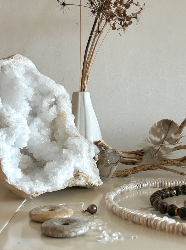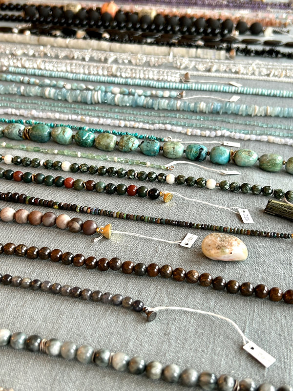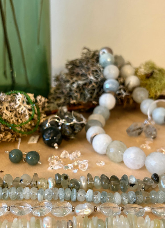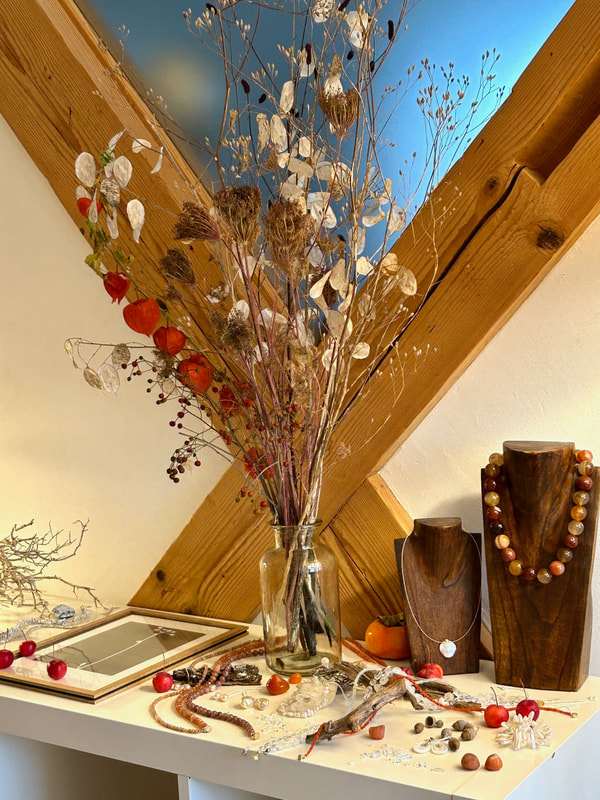 Den Schmuck kreiere ich selber. Im Mittelpunkt stehen ausgewählte, kraftvolle Steine. Anna Vogelsang und ich beraten Dich gerne.
